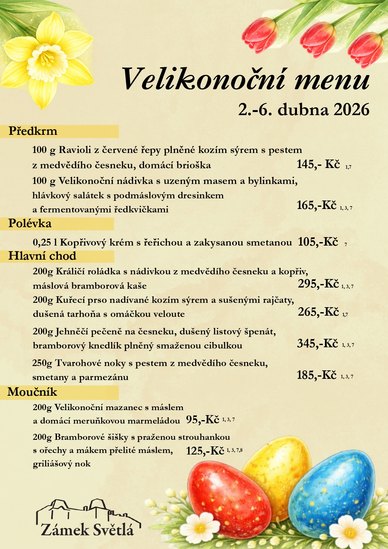 Přijďte s námi oslavit svátky jara na zámek a dopřejte si naše speciální velikonoční menu, které bude k dispozici od 2. do 6. dubna.